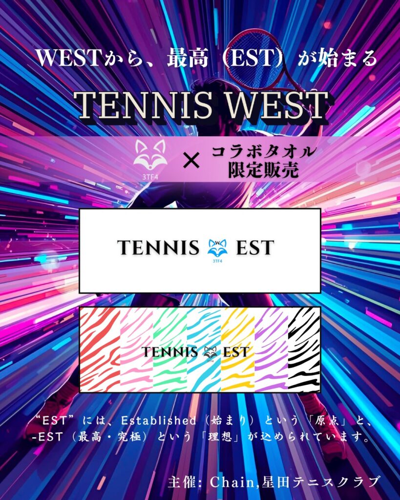 TENNIS WEST×3TF4コラボのオリジナルタオル、先行販売は以下ページから