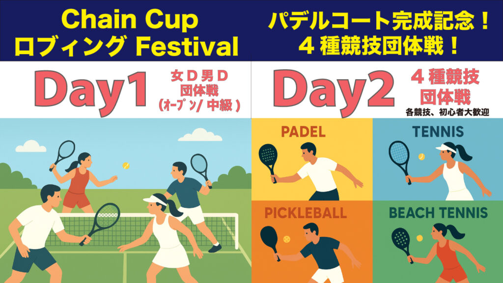 初日はテニス団体戦、2日目は「テニス、パデル、ビーチテニス、ピックルボール」の4種競技混合団体戦